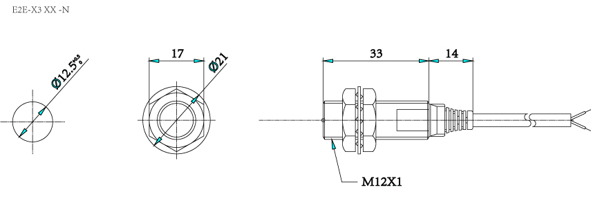 Dòng phổ thông phát hiện vật thể kim loại sắt. Size M12 đầu bằng, khoảng cách phát hiện 3mm, chế độ hoạt động 2 dây NC.