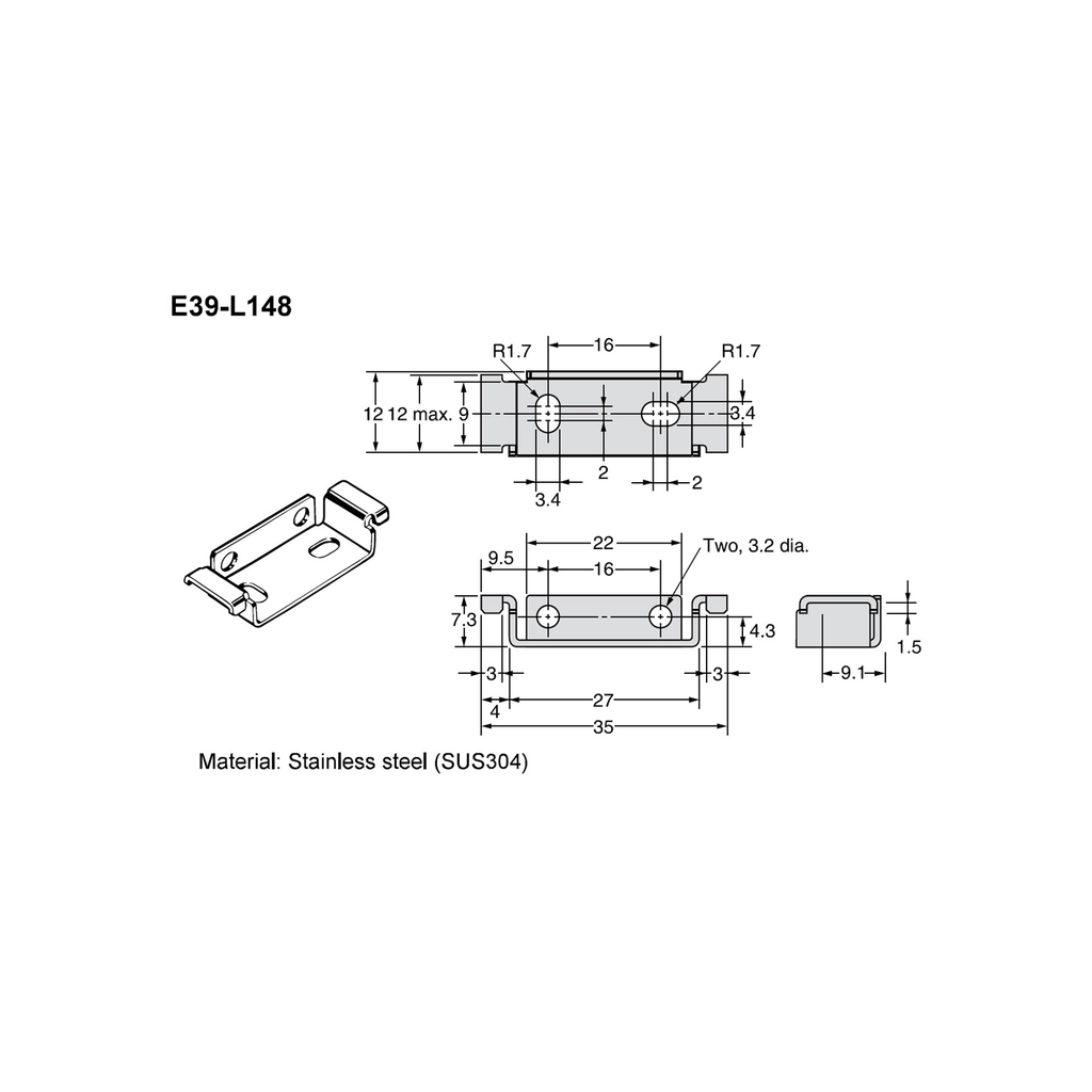 | Kích thước / đặc điểm nổi bật | Giá đỡ compact kích thước tổng thể khoảng 35 × 22 mm, có 2 lỗ 3.2 mm |