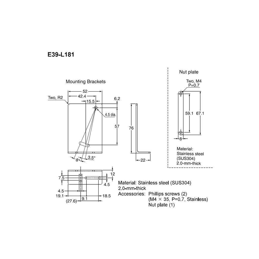 | Phụ kiện đi kèm | Vít Phillips M4 × 35 P=0.7 bằng inox ×2; nut plate ×1 |
