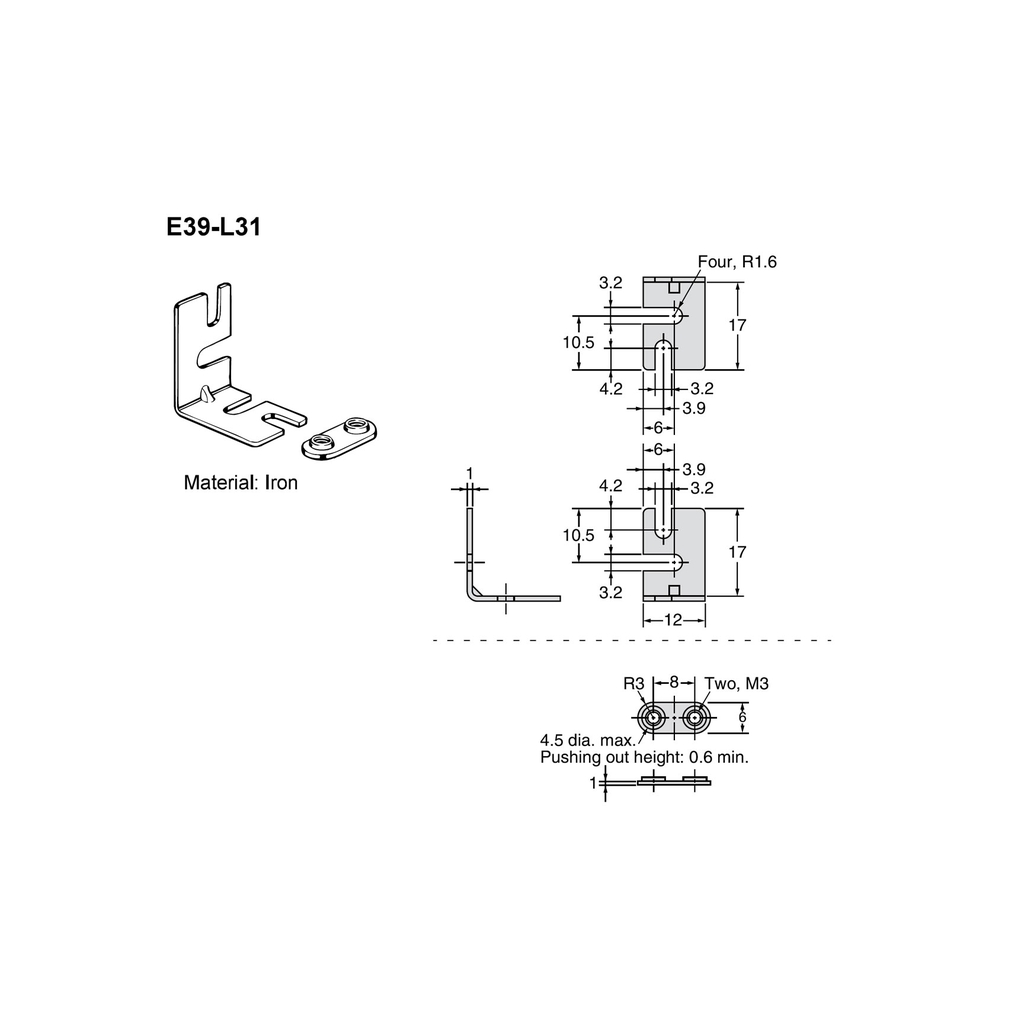 | Đặc điểm kích thước nổi bật | Giá đỡ chữ L nhỏ, dày 1 mm, thiết kế cho cảm biến có pitch lắp 8 mm. |