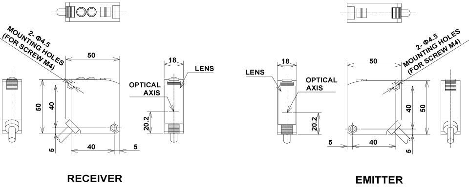 Cảm biến quang E3JK-TR11-C 2M Loại thu phát riêng.Auto Volt 24-240 VAC/VDC, Khoảng cách phát hiện 40m, Đầu ra Relay