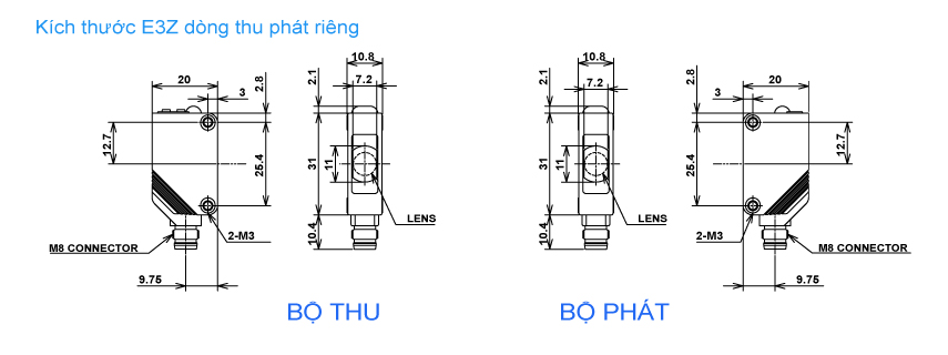 Cảm biến quang E3Z-T66 Loại thu phát riêng,đầu kết nối (M8) , Khoảng cách phát hiện 15m, Đầu ra Transistor NPN