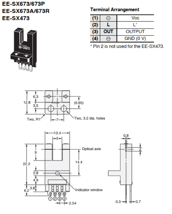 Cảm biến quang EE-SX673 Loại thu phát khe hở. 5-24VDC, Khoảng cách phát hiện 5mm, Đầu ra NPN