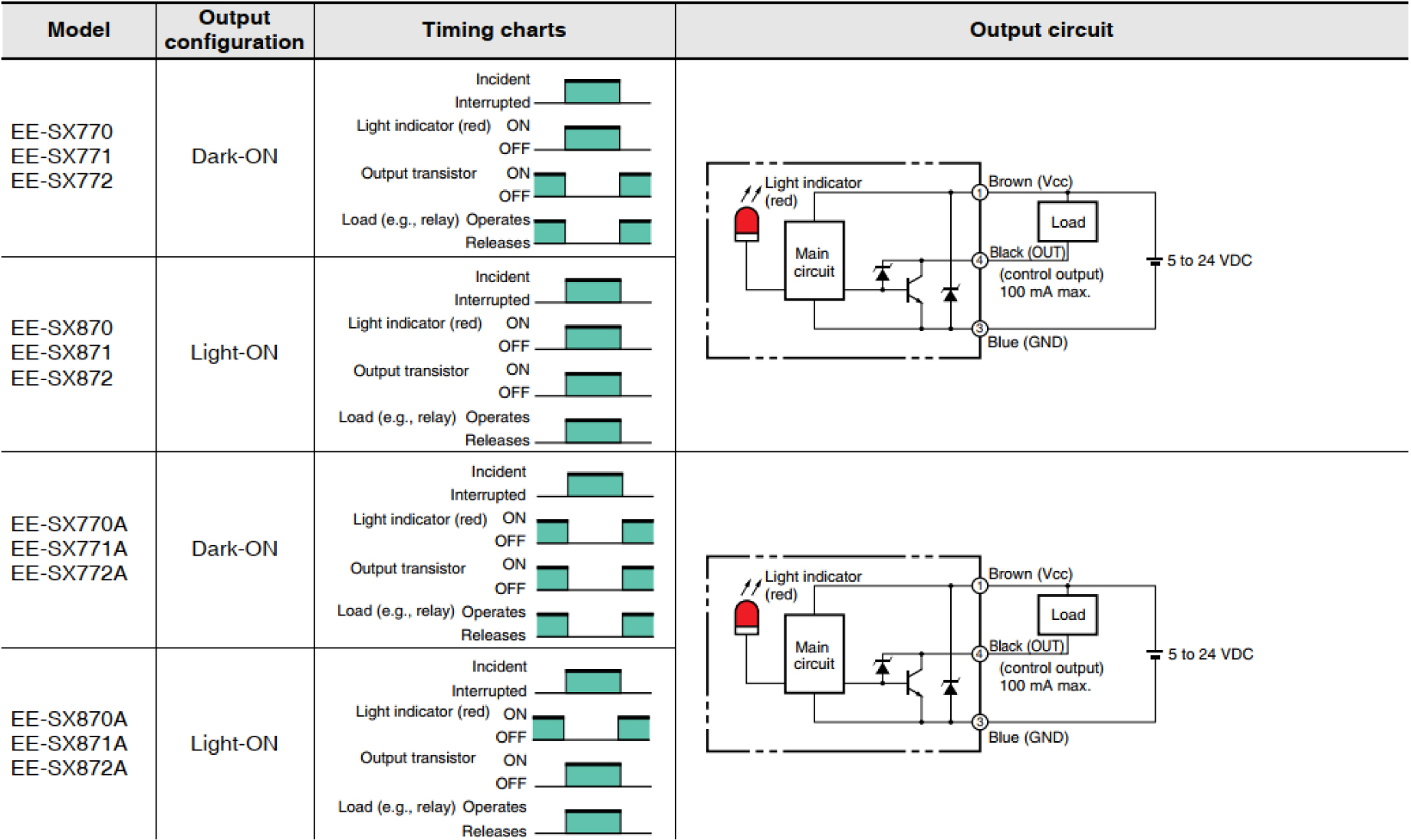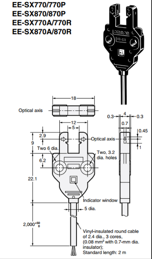 Cảm biến quang EE-SX770 2M Loại thu phát khe hở. 5-24VDC, Khoảng cách phát hiện 5mm, Đầu ra NPN Dark-On