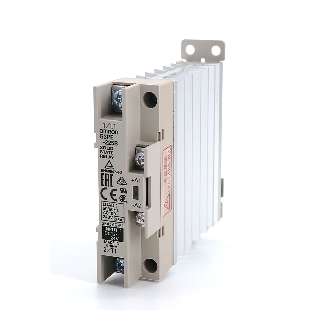 G3PE-225B DC12-24 là model thuộc dòng Solid State Relay (SSR) 1 pha của Omron, chuyên dụng cho điều khiển tải gia nhiệt (heater) công suất trung bình đến cao. Sản phẩm mang lại hiệu suất ổn định, độ bền cao và độ tin cậy tuyệt đối trong môi trường công nghiệp tự động hóa.