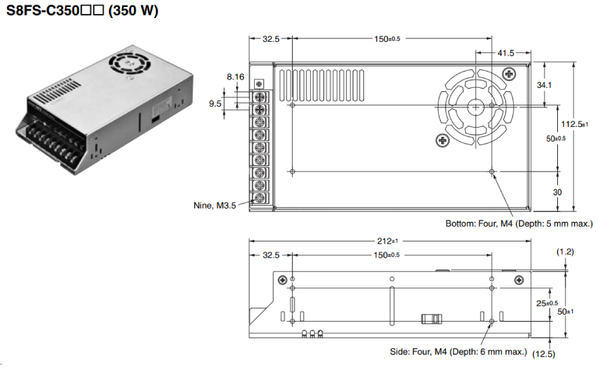 Bộ Nguồn S8FS-C35012 Khối đầu vít hướng lên trên, 350W, điện áp đâu vào 100~240VAC, Điện áp đầu ra 12VDC 29A