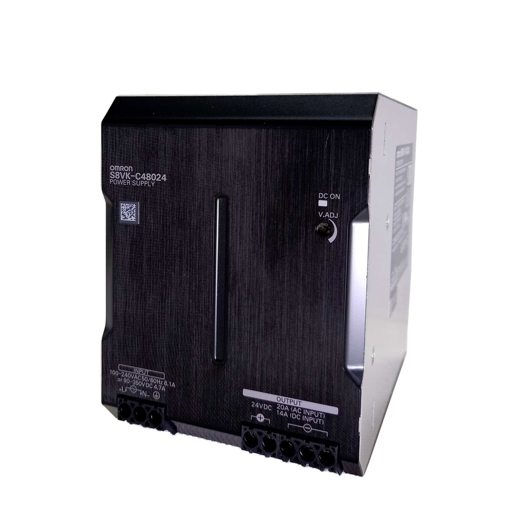 S8VK-C48024 là bộ nguồn DC đơn ngõ ra công suất 480W, hỗ trợ ngõ vào 100–240VAC (cho phép 85–264VAC) hoặc 90–350VDC; ngõ ra 24VDC / 20A, hiệu suất điển hình ≈91% @ 230VAC. Thiết kế IP20, đạt tiêu chuẩn an toàn/EMC UL/CSA/EN, vận hành ổn định trong tủ điện công nghiệp và hệ tự động hóa yêu cầu tải lớn.